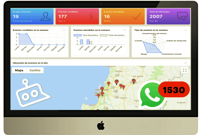 Rawlibot está integrado a +320 grupos de Whatsapp comunitarios en 4 regiones de Chile, y conecta rápidamente comunidades y centrales de incendio de empresas y CONAF.